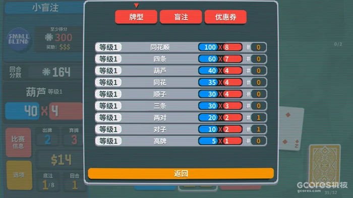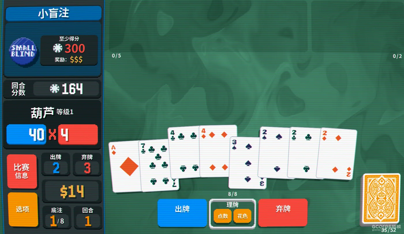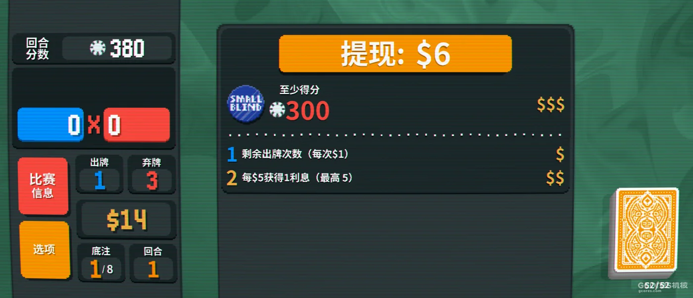 The interface of the clown at first sight follows the usual guided operation, and once you step onto the table, everything does not seem to be different from the rules of Texas Hold'em, except for the accumulation of multiple discard scoring opportunities until the store selection is completed after the first level is completed.After entering the store, I was able to explore this rouge system for the first time, and the ever-increasing standard of clearance points, the ever-increasing number of cards, the ever-accumulating store economy, and the final BD goal gradually surfaced, which made people want to stop.Of course, since it was only an hour of experience, I could only peek at the leopard, which was also considered to save money for friends who didn't have time to play.